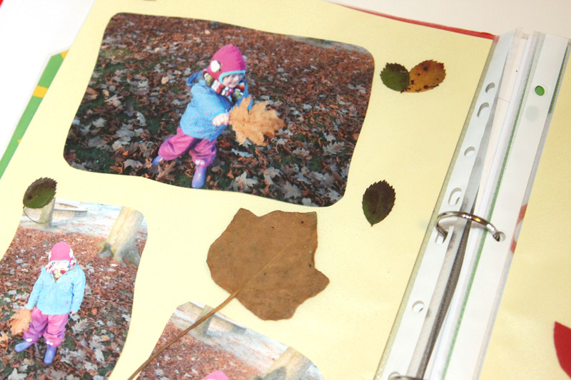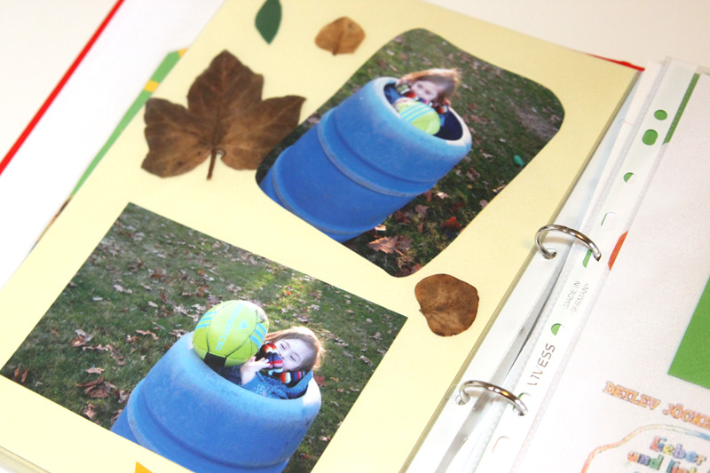 Und was im Herbst so passiert, hat jedes Kind in einer persönlichen Mappe festgehalten. Fotos, gesammelte Blätter, geprickelte und gemalte kleine Kunstwerke, Lieder und Geschichten rund um den Herbst, Backrezepte, Bastelideen…