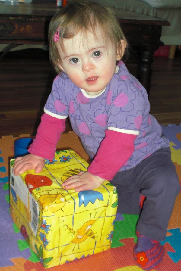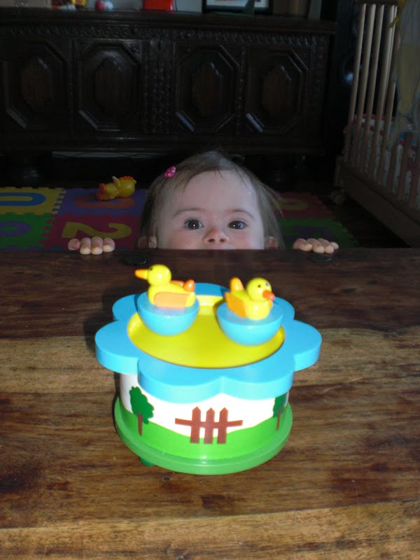 Die spielt jetzt für mich, wenn ich mich am Couchtisch hochziehe oder mal wieder in die Tischkante beiße (vielleicht kommen ja doch noch bald die ersten Zähnchen…).