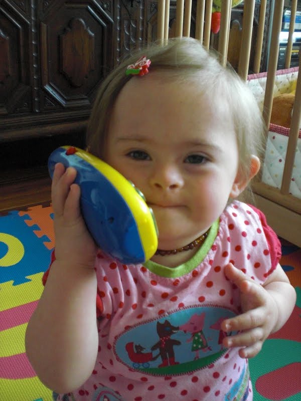 Louisa hat das gleiche Telefon wie Du und das schnappe ich mir jetzt auch immer wieder mal. Mama hat einfach den Lautsprecher mit Tesa zugeklebt, dass es am Ohr nicht so laut ist, doof!
