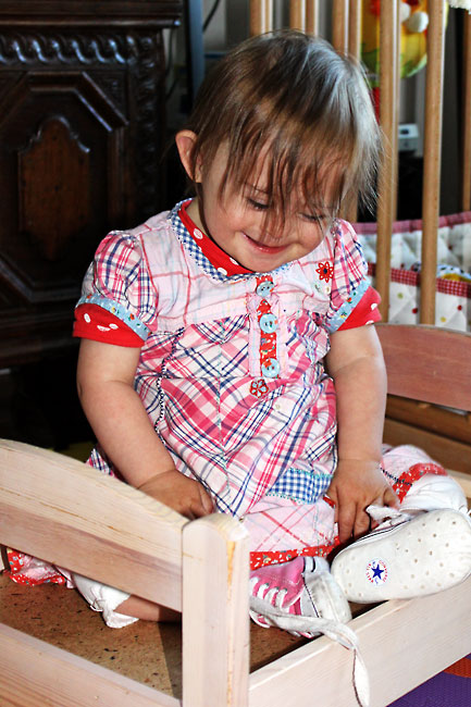 Allerdings geb ich mich so schnell nicht geschlagen und schaffe es doch noch. Bett zusammenbauen, beziehen und Lotta reinstecken. 4:1 Endstand. Und bei Papa? Ich frag besser gar nicht erst… :o)