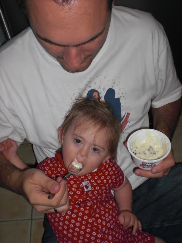 Papa teilt seinen Nachtisch GERNE mit mir! Von Mamas Schokopudding habe ich keinen einzigen Löffel abbekommen!
