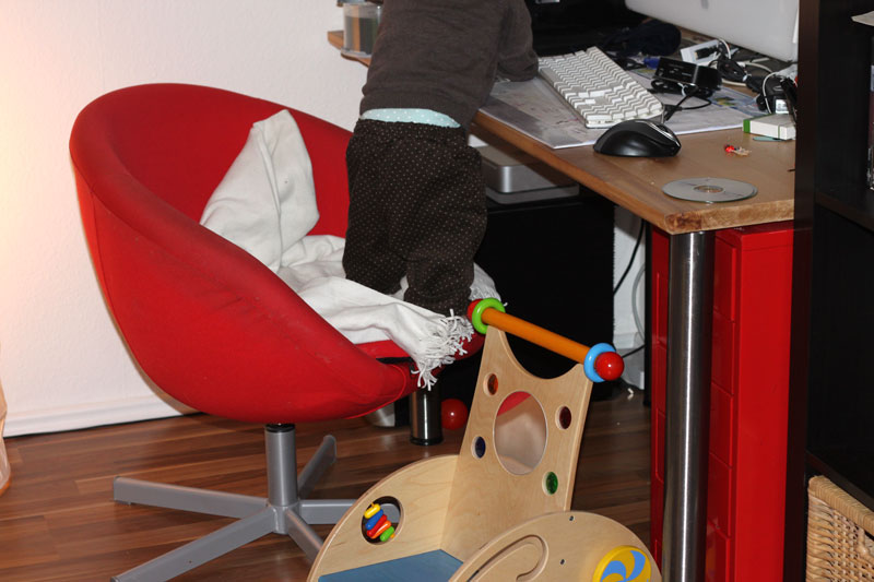 Wenn die Mama im Kinderzimmer Wäsche sortiert, der Papa arbeiten ist und der Mac sich auf einmal akustisch bemerkbar macht, dann kann das nur einen Grund haben…