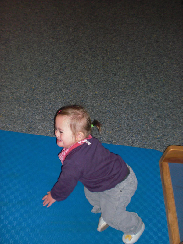 Während ich vor ein paar Wochen noch die Treppen von dem Rutschturm hochgekrabbelt bin, halt ich mich nun am Geländer fest und GEHE die Treppen hoch. Hab ich mir irgendwo abgeguckt…cool, ne?