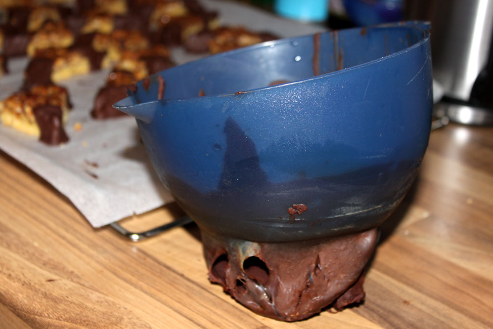 Hmm, hätte ich das gestern geahnt hätte ich Dir vom Schweden ein neues Schüsselchen mitgebracht, am besten aus Metall, das schmilzt etwas später. Oder mach es das nächste Mal wie ich: Mikrowelle ;-).