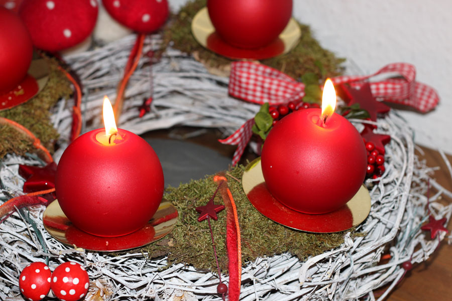 Schöner Adventskranz, da ist wohl die Weihnachtskiste endlich aus dem Keller hochgewandert.