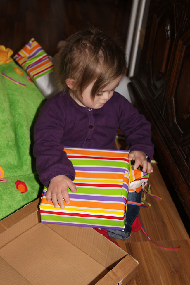 …ein Suchbild! Wo sind die Geschenke? Ich hab sie um mich verteilt…hihi! Und die Schürze hat Sameas Mama für meine Puppe genäht.