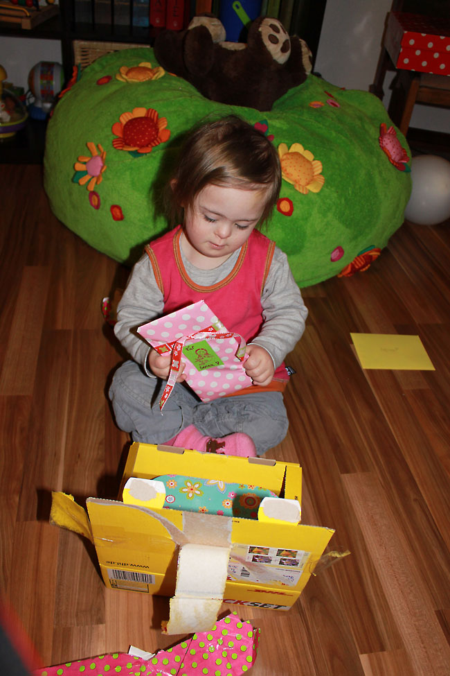 Liebe Sonea, erstmal noch alles alles Liebe zu Deinem 2. Geburtstag kleine Mops-Königin. Die Pakete waren ja mega klasse und das sind echt tolle Sachen, die Du da bekommen hast. Und das Du immer weiter auspacken wolltest, kann ich voll verstehen, denn ich bin genauso neugierig und kann kein Paket stehen lassen. 😉 Also lass Dir da von Deiner Mama nicht reinreden, Pakete sind zum aufmachen da. Erst recht wenn es so viele sind. 😉