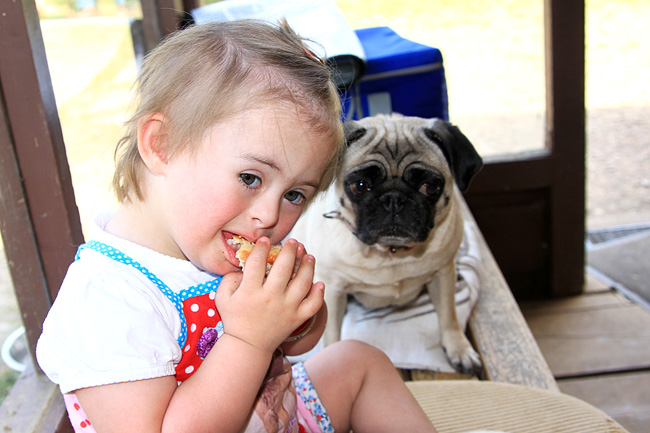 Sogar mein Grillwürstchen habe ich geteilt…und mir anschließend einen Schluck aus dem Hundenapf gegönnt…