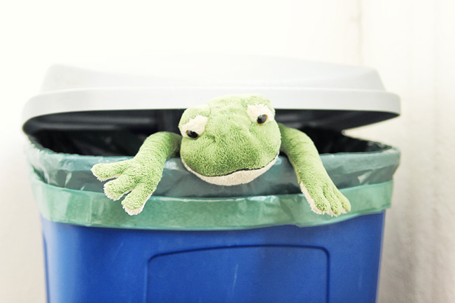 Mein Frodo-Frosch ist wieder da! Im Balkon-Mülleimer hat er die Nacht verbracht. Wer macht denn sowas?! Meinen Frosch einfach in den Müll schmeißen! Unverschämtheit!! Aber nun ist er wieder da….und so richtig weg war er ja auch nicht! Er ist ja schließlich auch mein liebstes Kuscheltier…