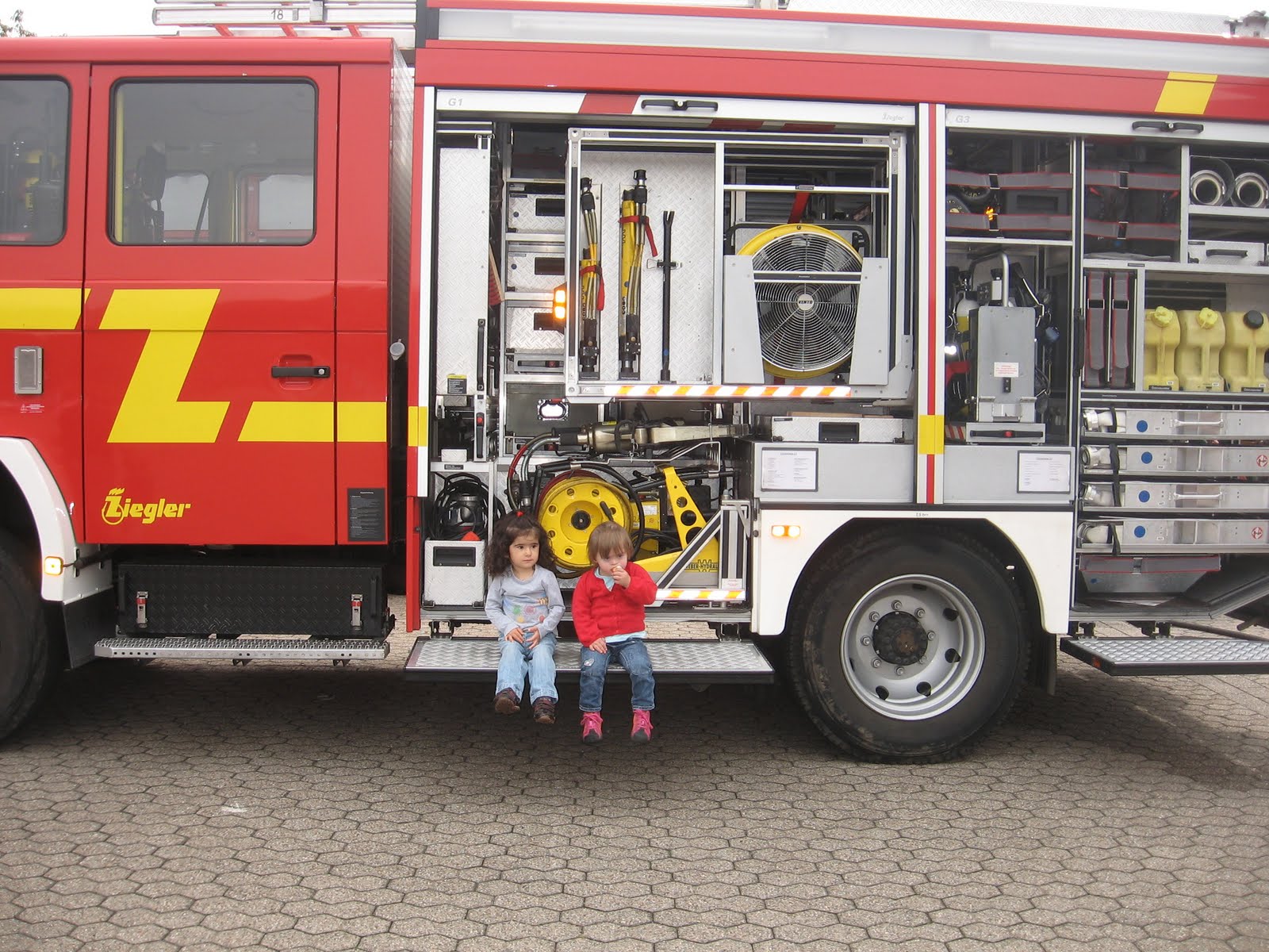 … wir durften mit einem Feuerwehrwagen mitfahren…