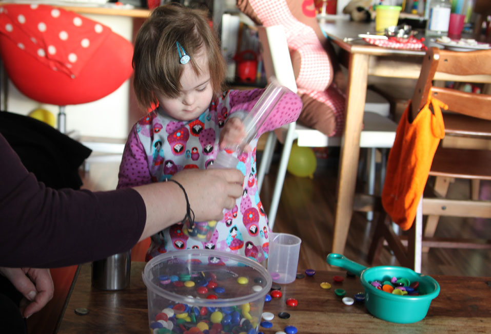 Meine Frühförderin war mal wieder sehr begeistert zu sehen wie toll ich das mit dem Schütten mache…egal wie breit das Gefäß ist, ob mit oder ohne Henkel…ich übe aber auch jeden Tag fleißig…zum Beispiel, wenn ich es cooler finde aus Papas großem Wasserglas zu trinken, als aus den Becher und meinen Sprudel ins große Glas kippe, um dann daraus zu trinken. Oder den Kakao, den ich in eine Pappschachtel gieße, weil ich es in dem Moment spannend finde mal aus einer Pappschachtel zu trinken (aber nicht nachzuempfehlen…fängt irgendwann an zu tropfen und Mecker von irgendeiner daher laufenden Spaßbremse vorprogrammiert…).