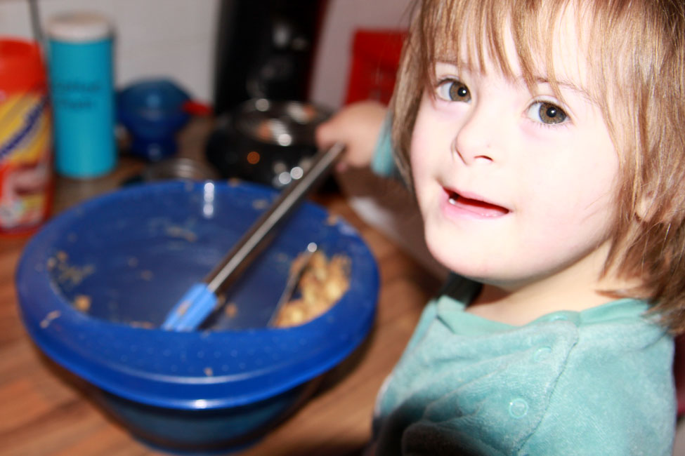 …ganz Oldschool in der Küche. Fleißig mitgerührt habe ich. Für das Verteilen auf den Blechen war Mama zuständig…