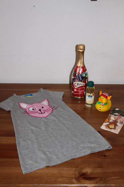 …für ein cooles Strickkleid (nächste Herbst/Winter Saison pass ich da rein!), vielen Leckereien, eine Ente für die Sammlung und was kuscheliges für Mama und Papa!