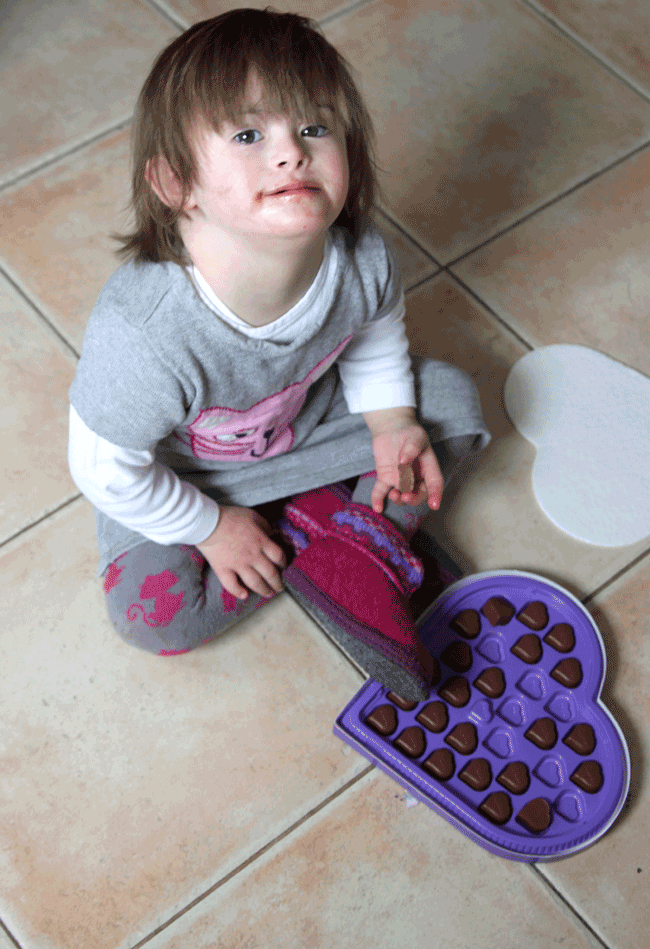 Hi hi hi – bei Euch gibt es wenigstens Pralinchen! Bei uns gibt es heut zum Valentinstag einen neuen Kühlschrank! Grins!!!