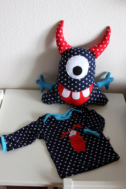 Dieses monstermäßige Duo ist für einen neuen süßen kleinen Erdenbürger entstanden, den wir heute besucht haben.