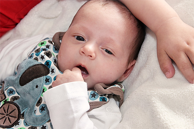 Aber sage das nicht der Mama und dem Papa – Eltern wollen doch so gerne hören, dass die neuen frischen Babies nach ihnen kommen ; ) Und ja: Rot ist echt seine Farbe!
