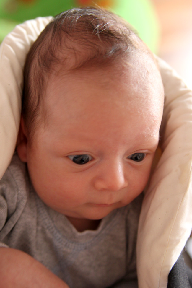 Und Mama…na ja, wenn man bedenkt, dass Vincent letzte Woche bei seiner U3 ganze 4570 Gramm gewogen hat (also 1440 Gramm mehr als bei der Geburt), dann kann man sich denken womit meine Mama viel zu tun hat, nämlich den kleinen Vielfraß hier zufrieden zu stellen. Für ein Stillkind ist das eine ordentliche Gewichtszunahme und Mama war schon besorgt, dass es vielleicht an ihrem Schokoladenkonsum (der momentan auch wirklich seeeeehr hoch ist) liegen könnte. Aber da hat der Kinderarzt und auch unsere Hebamme Mama beruhigt, alles ist also gut, auch Mamas Milch. 6 cm ist Vincent seit seiner Geburt gewachsen und Größe 56 wird so langsam knapp.