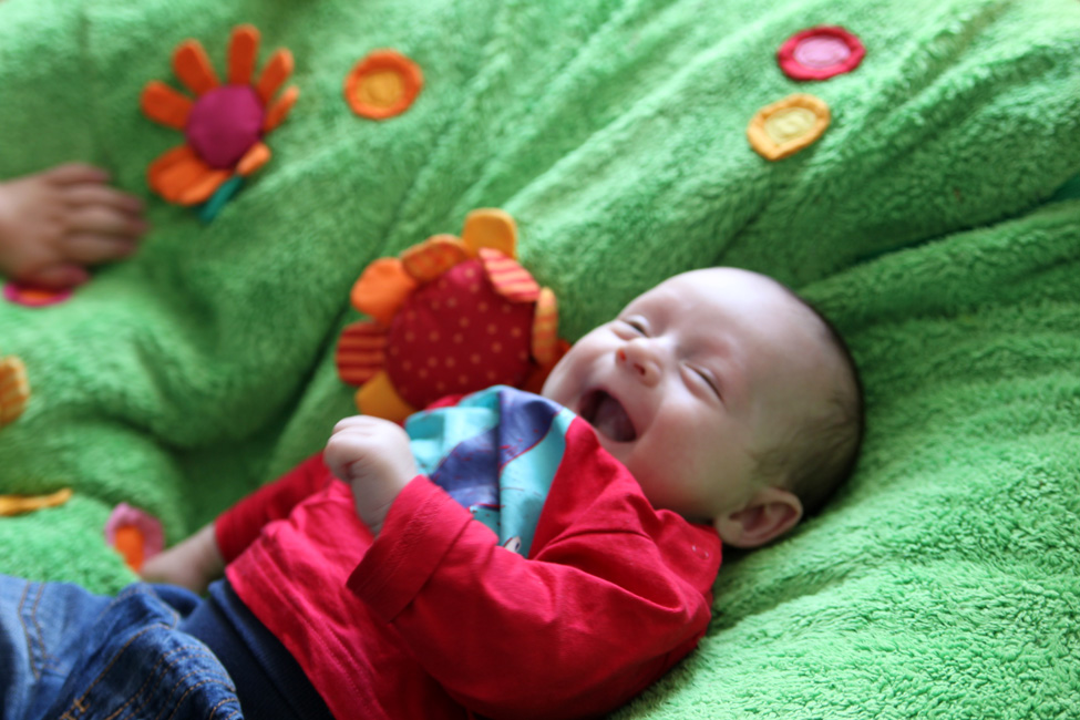 Oh Mann! Vincent lacht ja schon richtig!!! Bravo! Wenn das mal nicht an der guten Kakao-Milch von Mama liegt:-) Süsse Bilder von den beiden Süssen! Und Schoki darf definitiv NIEMALS nicht verboten werden!!!