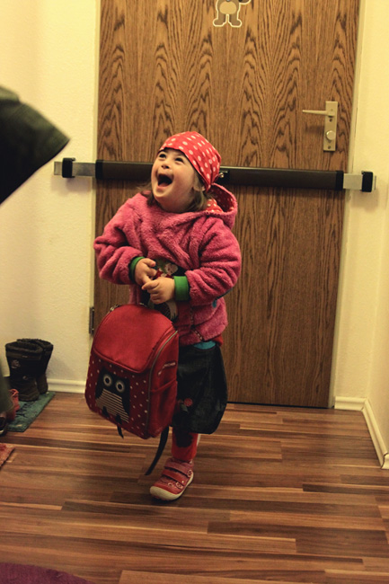 Ein bisschen rumgetrödelt, gesungen, getanzt, gelacht und dann geht es mit Papa auf zur Kita.