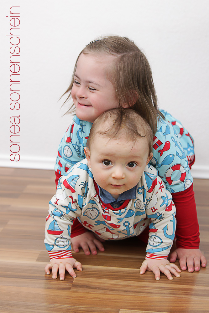 Oh, wie süß. Ich mag ja solchen Geschwisterlook bei meinen beiden auch total gerne. Der Stoff ist total schön, das Kleidchen ist der Hammer und deine zwei Mäuse sowieso.