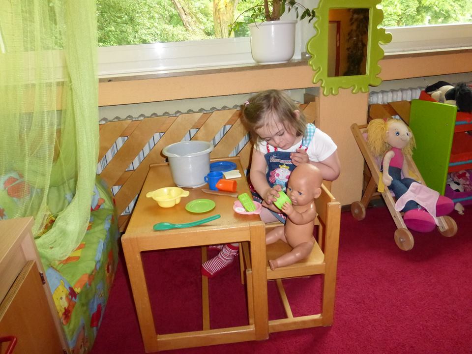 Meine kleine Tochter findet man auch sehr oft in der Puppenecke, aber gerne auch in der Bauecke.