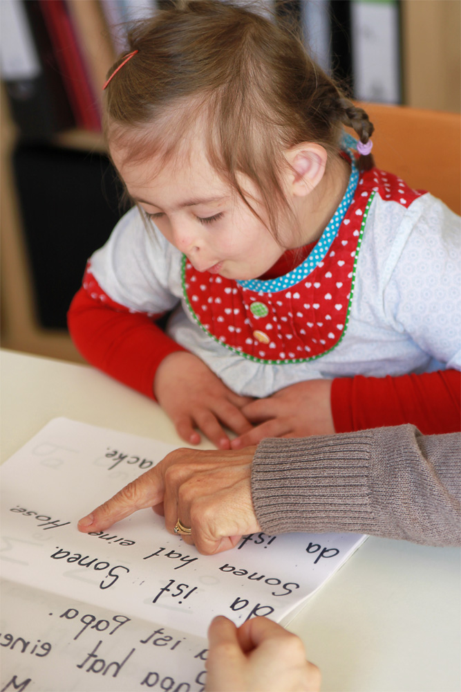 Beim frühen Lesen geht es nicht darum Lesen zu lernen, sondern um den Spracherwerb an sich und dessen Verbesserung. Dabei wird die verstärkte visuelle Wahrnehmung bei Menschen mit Down-Syndrom genutzt.